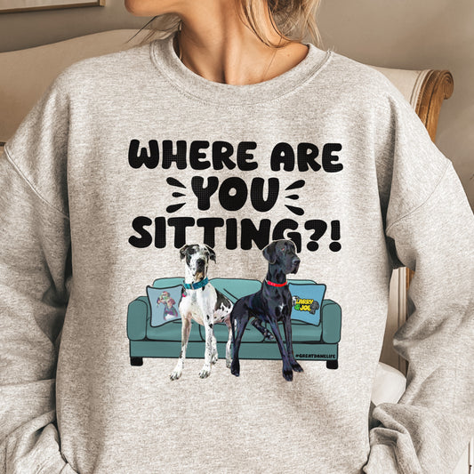 Where are YOU Sitting?! Joe Great Dane Sweatshirt