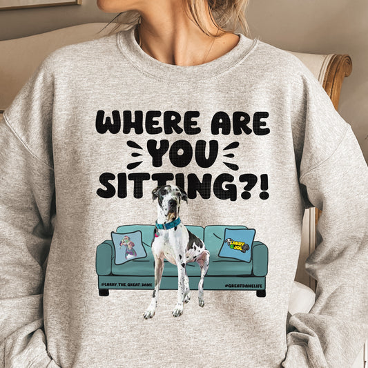 Where are YOU Sitting?! Larry Great Dane Sweatshirt